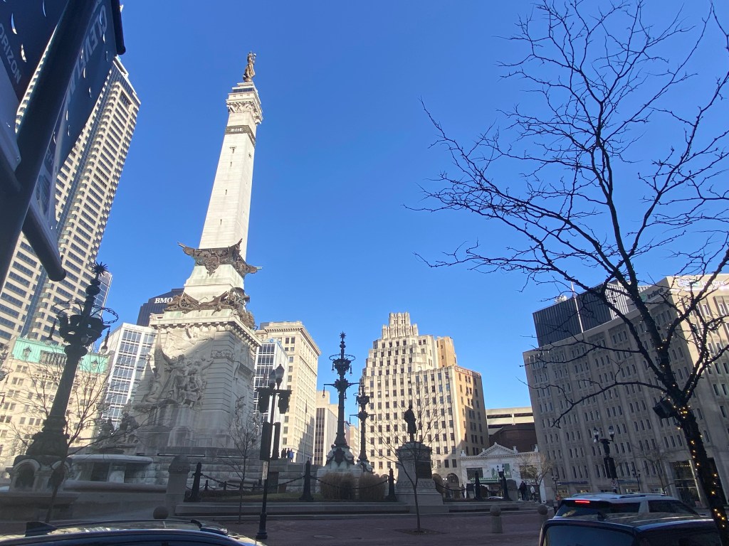 We went back to downtown Indianapolis to tour Monument Circle. The Soldiers and Sailors Monument is an Indy icon standing tall right in the middle of a round-about. We stopped for a hot beverage at South Bend Chocolate Company to warm up while walking around the circle. The Dark Mocha is absolutely delicious! Made with real chocolate and not too sweet, it was the perfect treat to keep us warm. The buildings surrounding Monument Circle are kept in art deco style and jazz music from the 1920s is played outside to add to the atmosphere.
