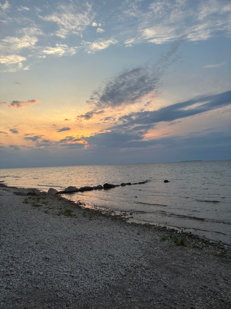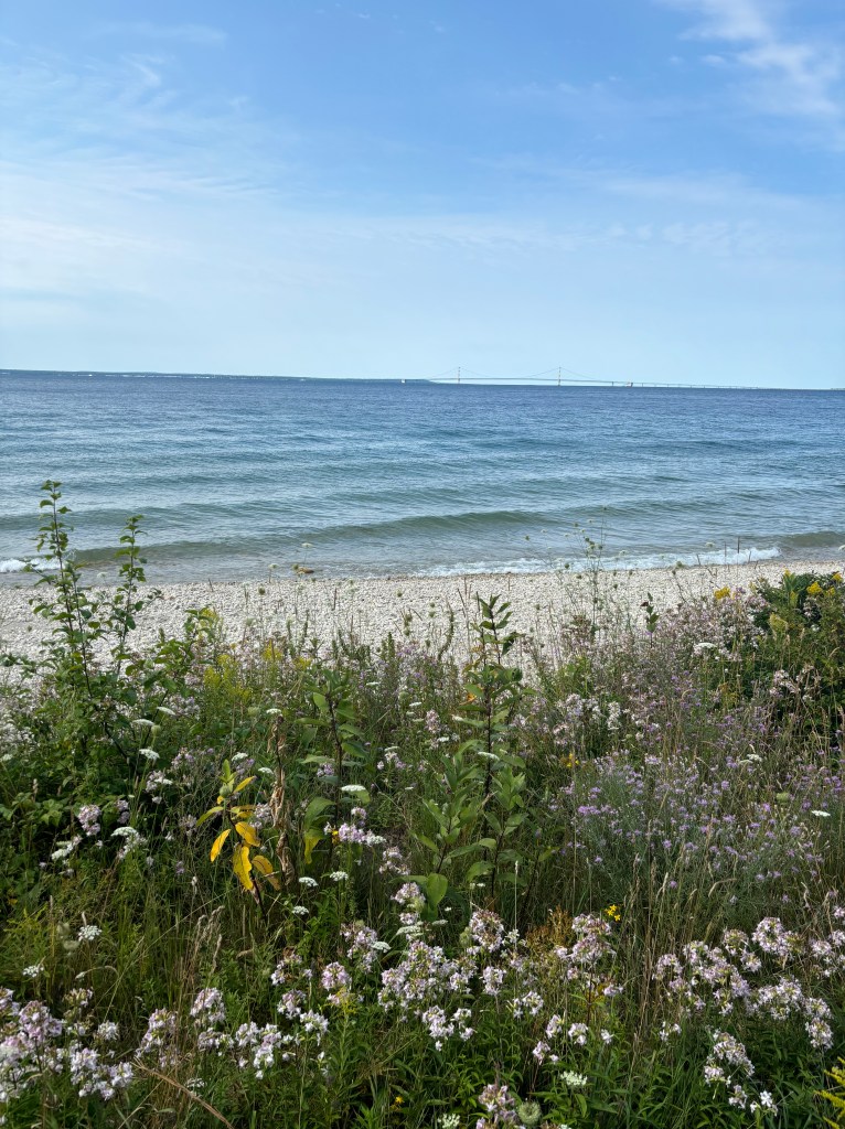After this stop, we started the drive to our first lake, Lake Michigan. We stopped for dinner in Mackinaw City which is right in between two of the Great Lakes; Lake Michigan and Lake Huron. Our hotel however was on Lake Michigan so we collected our sand and water here before resting for the night.