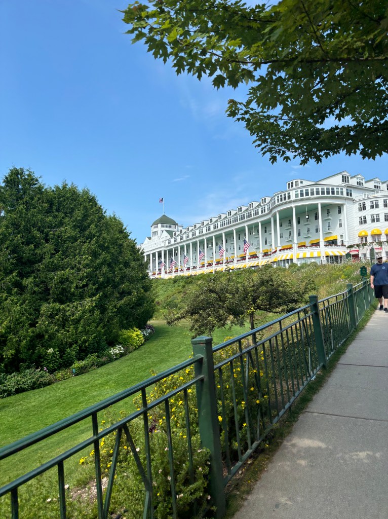 The Grand Hotel is an icon of Mackinac Island. It stands perched on top of one of the island’s hills, overlooking the vast lake below and boasts a 600 foot wrap around porch for guests to enjoy the views and a calming sea breeze. The hotel was built in less than three months time in 1887 and was a star of old world hospitality. Today, we enjoyed lunch at their famous luncheon buffet. They had everything you can imagine; oysters, steak, salmon, crème brûlée, their signature pecan ball, and so so so much more. After we ate (more than we probably could), my dad and brother went off to bike the three mile trail around the island while my mom and I opted for a horse drawn carriage tour of Mackinac and it’s history. This tour took us through the state park where we saw much of the stunning nature which draws countless visitors to this beloved island.