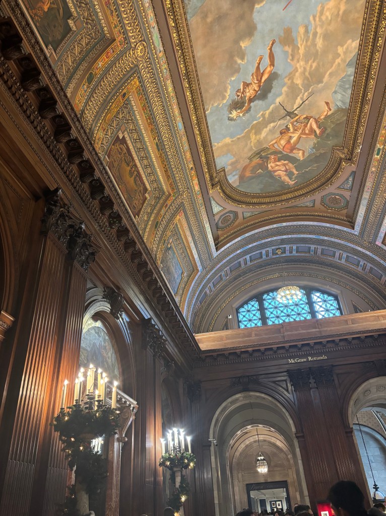 We then made a quick stop at the New York Public Library on our way back to the hotel, strolling through Christmas markets still left up from the recent holiday festivities. I hadn’t been to the Public Library before, but I would definitely take my work here, or sit to read a book in these ornate halls if I lived in New York. It’s amazing to be so casually surrounded by so many beautiful things. In addition, the Library had an exhibit on cultural wonders of the world. We saw a Gutenberg Bible, one of Shakespeare’s original folios, and the real Winnie the Pooh stuffed animals.
