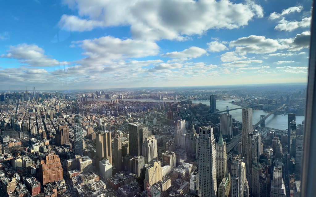 The next morning we walked out into the crisp city air and made our way to the Freedom Tower and the One World Observatory. This skyscraper sits on the lower tip of the Manhattan peninsula jutting into the New York Harbour and offers 360 degree views of the whole metropolitan area. On such a clear winter morning like today, you can see everything, from the Statue of Liberty to the Empire State Building to the Brooklyn Bridge. I will say, having been to the Empire State Building before, I prefer the Freedom Tower if you are looking for a bird’s eye view of the City. The Empire State Building is located right in the heart of the city, so there are many buildings blocking the views, whereas the Freedom Tower showcases the city as a whole.