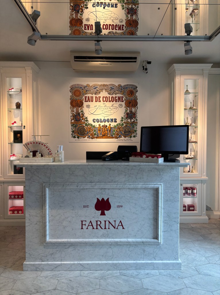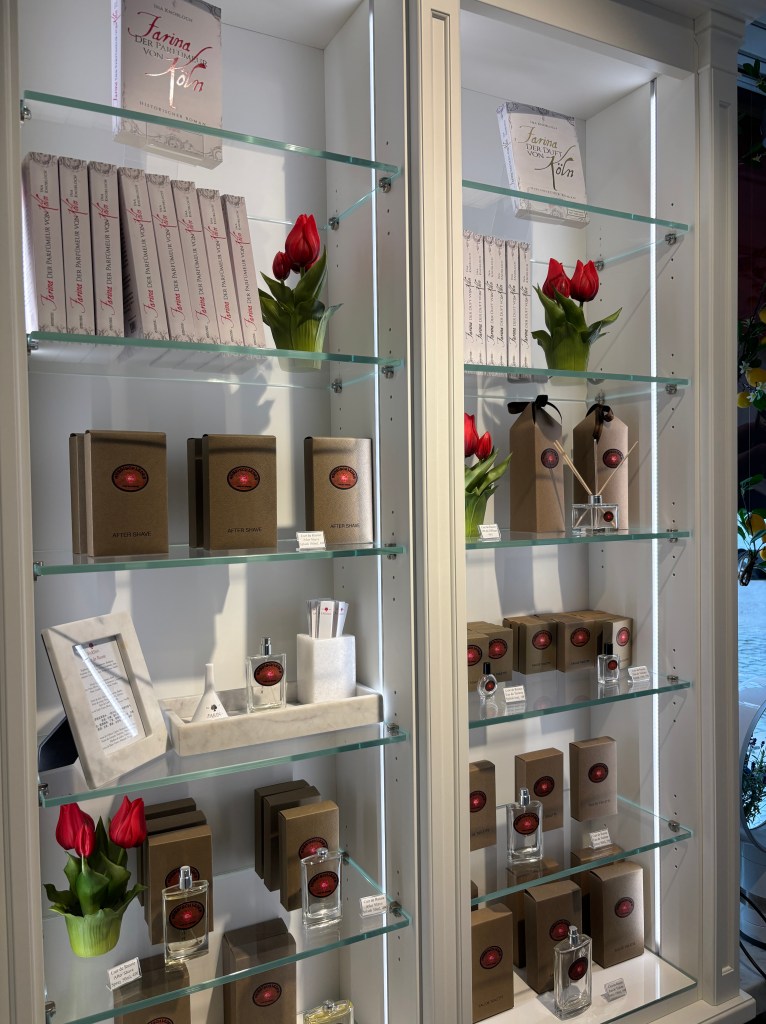 After dropping our stuff off at our hostel, we started to explore the city. We each had a list of a few museums we wanted to visit, and started at the Farina House, or Cologne Perfume Museum. As you might imagine, the style of perfume for men which we call “cologne” was invented here in, you guessed it, Cologne. While Cologne is the French spelling of the German city of “Köln,” the iconic perfume was invented here in Germany before joining the ranks of other French perfumes, like eau de parfum, eau de toilette, and now, eau de cologne.