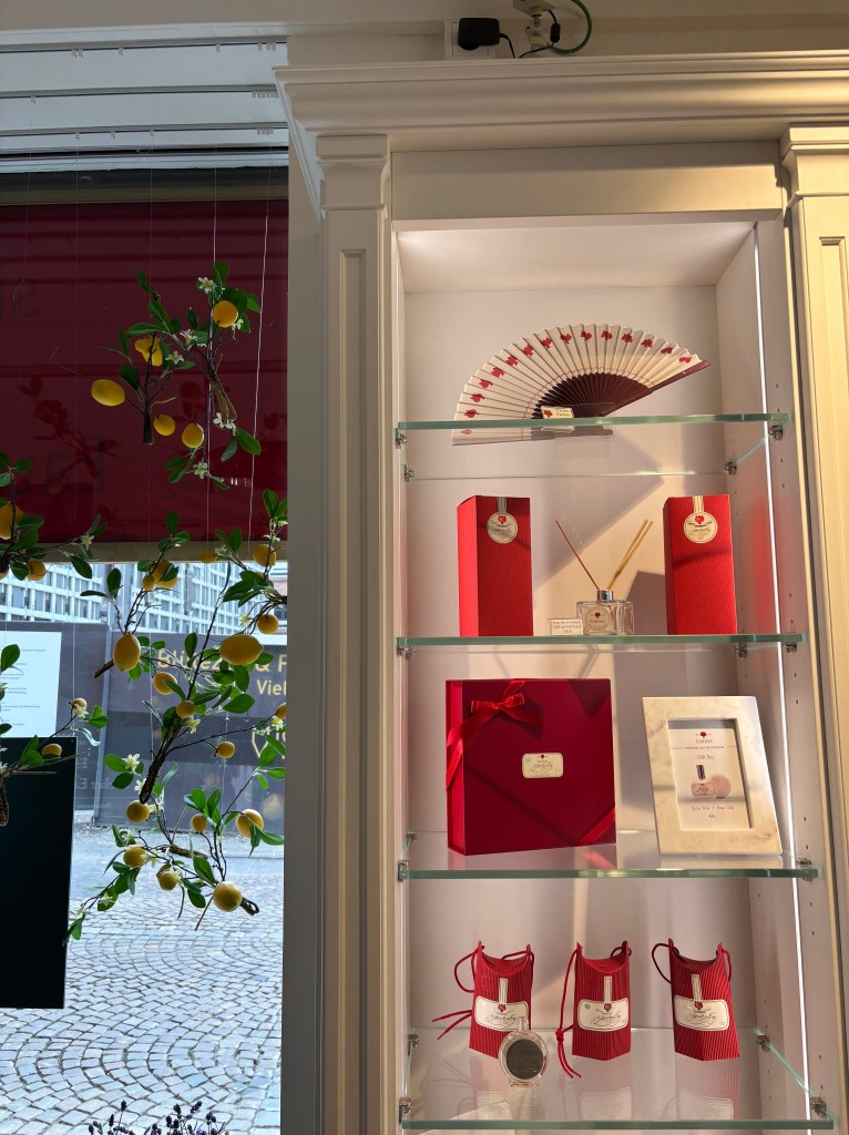 A guide first gave our tour group a short history lecture on the invention of cologne here in the house. Then we explored the rooms of the house which were filled with artifacts from the perfume’s invention in 1709. There was also an interactive activity where we got to smell the individual components of common ingredients for cologne.