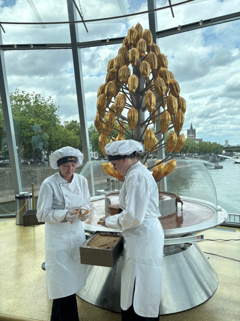 Our next stop was the Lindt Chocolate Museum. I’m still not sure what Lindt’s connection to Cologne is, since it’s a Swiss brand, but we weren’t going to say no to chocolate. While a bit more expensive than the perfume museum ticket, it did come with ample amounts of free chocolate as well. It was very informative, taking us through all the steps of the cocoa growing to chocolate making process, and was interactive as well. There is one room which participants line up and push a button for a free chocolate piece. To our luck again, the machine malfunctioned and gave us an extra piece to split!