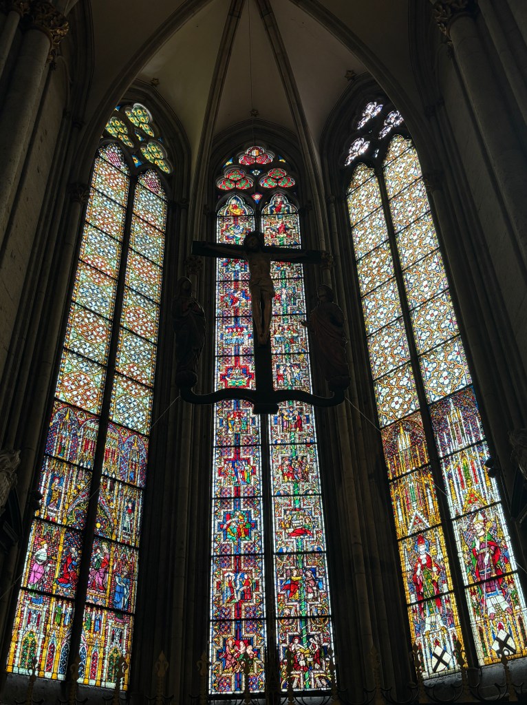 I can’t say the interior of the cathedral measure up to the grandeur of its exterior, but we still enjoyed exploring the stained glass covered walls of the inner sanctuary. There were incredible mosaics on the floor as well. One of the most interesting parts of the cathedral is its proximity to the Cologne Hauptbahnhof (main train station). The cathedral is simply right there outside the Hauptbahnhof. You exit and boom, there it is.